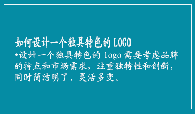总之,设计一个独具特色的logo需要考虑品牌的特点和市场需求,注重独特性和创新,同时简洁明了、灵活多变。设计师需要花费大量时间和精力来研究品牌、市场和受众,以确保设计出一个符合品牌形象和市场需求的标志。